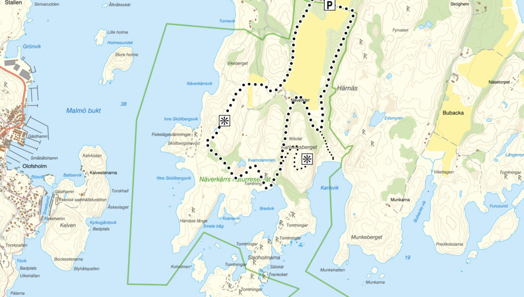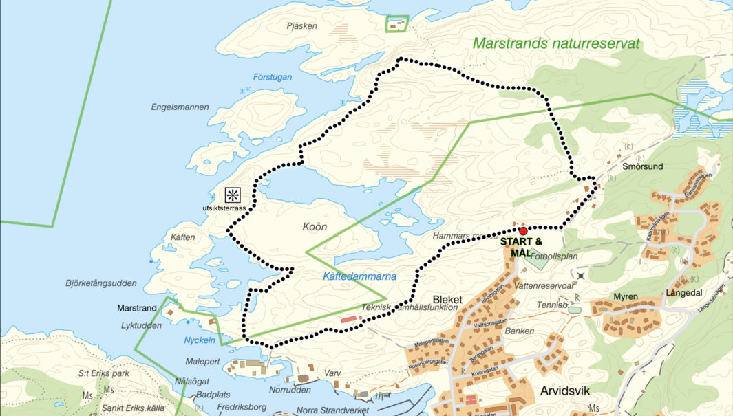 Naturen runt Marstrand präglas av närheten till havet. Stora delar av reservatet, särskilt längst ut mot havet, domineras av karga och kala hällmarker. Många fornfynd visar att människor levt i området långt innan Carlstens fästning började byggas på 1600-talet. Längd: Cirka 5 km. Svårighetsgrad: Bitvis svår terräng. Klippor, stigar, spänger och en del trappor. Start […]
